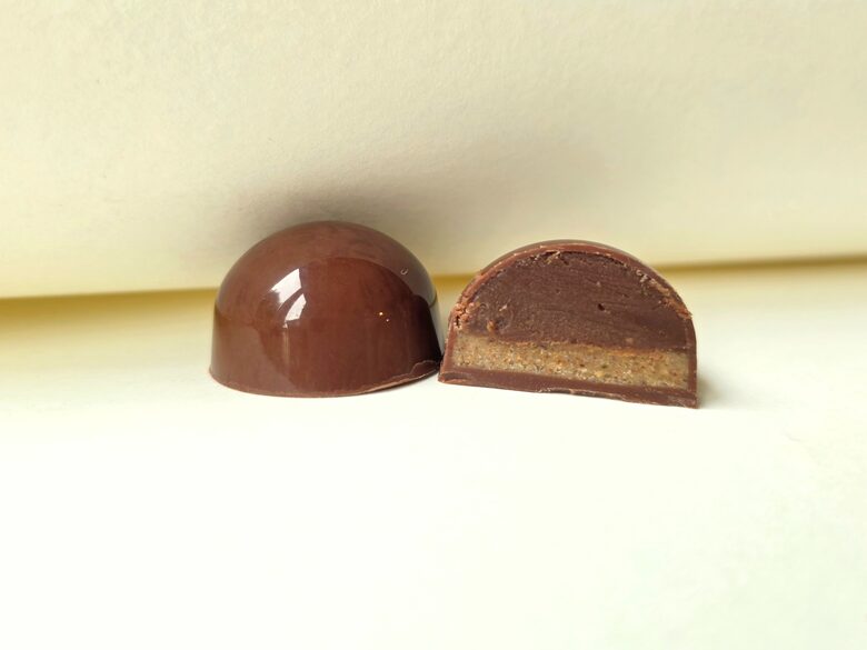 Viskija šokolādes krēms un pekanriekstu kraukšķis. Tas ietverts piena šokolādes kausiņā.